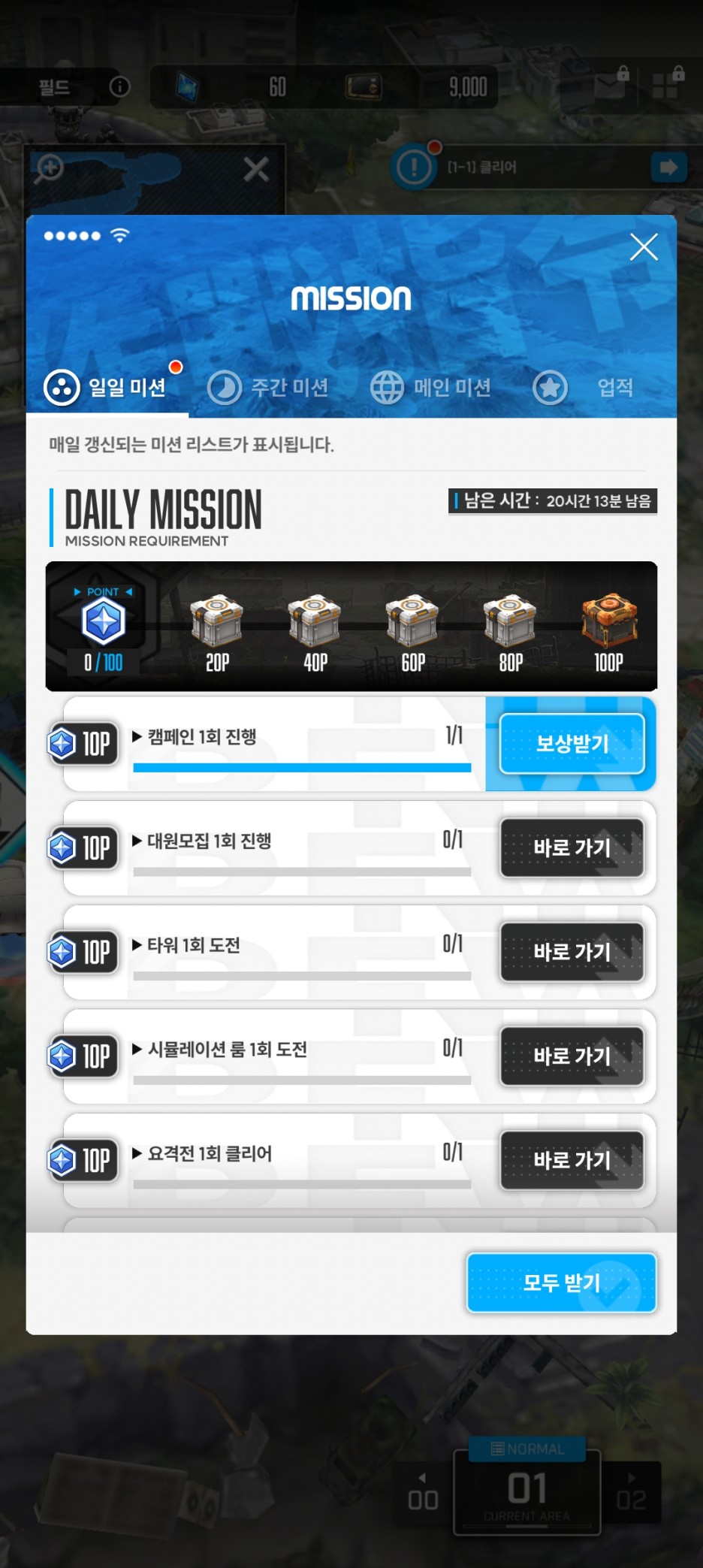 이 게임 또한 어렵지 않은 일일미션과 주간 미션, 메인 미션으로
