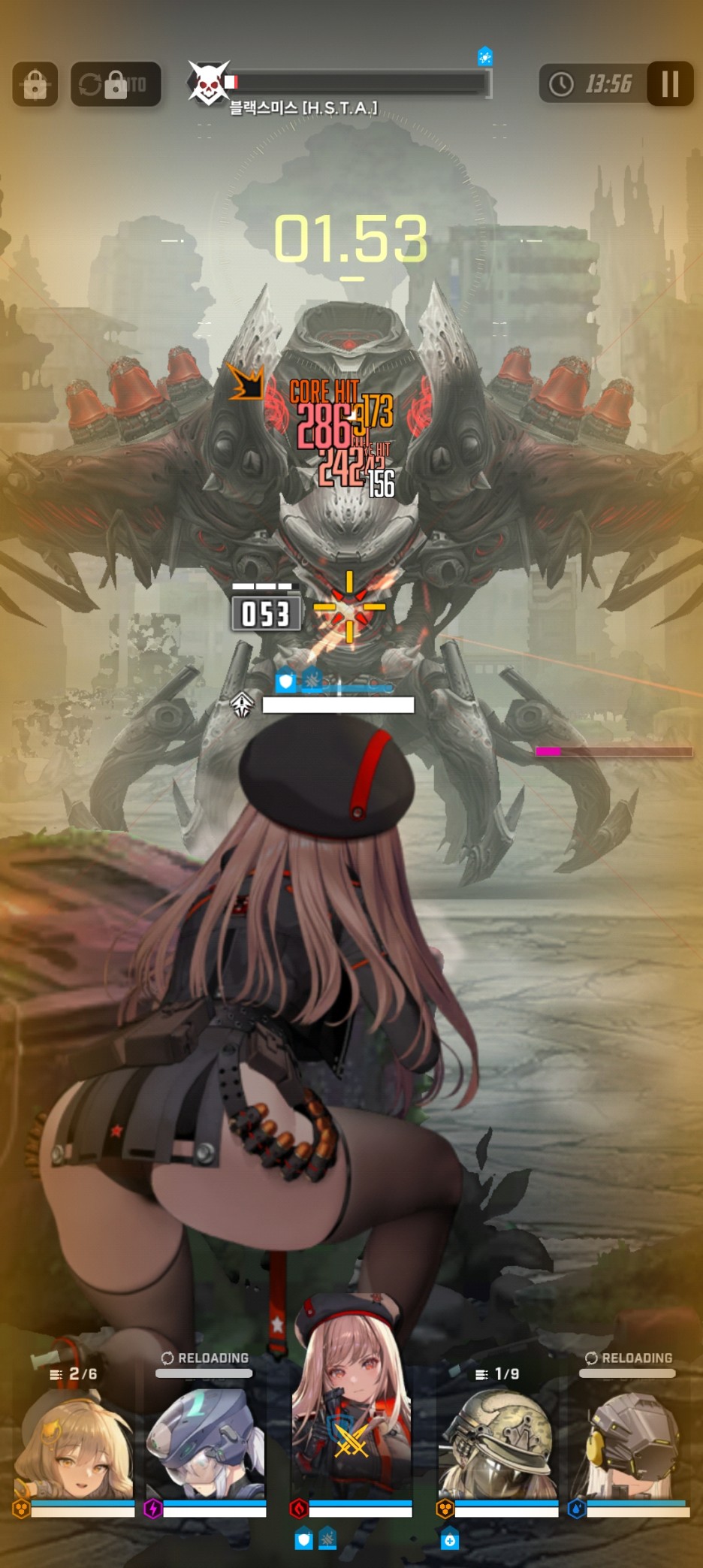 보스몹과 캐릭터(니케)가 잘 만들어졌고 캐릭터를 전환해서